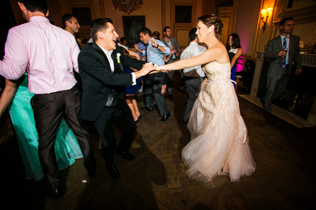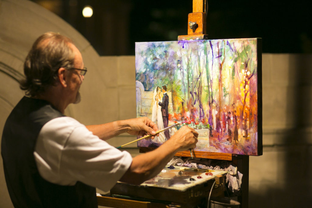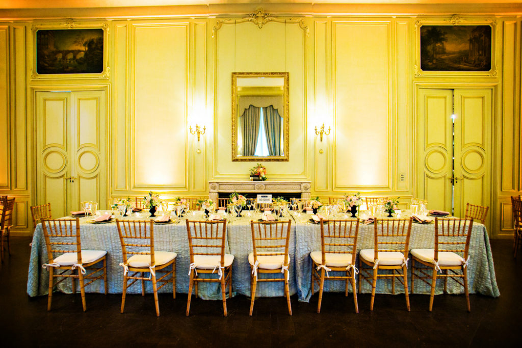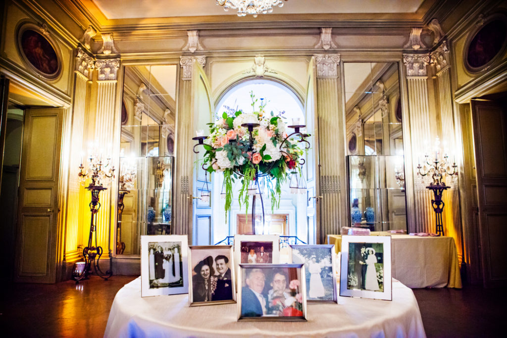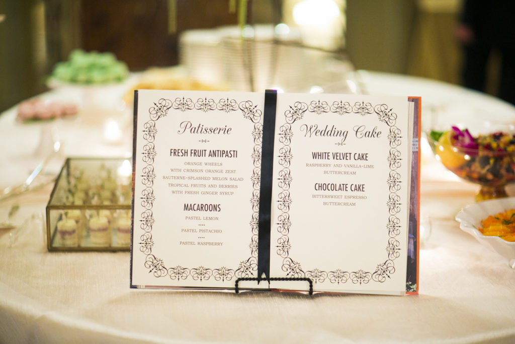 Synopsis: As guests arrived, they were greeted by the sounds of a French jazz ensemble while enjoying cooling lemonades and cucumber water. For an intimate ceremony, guests sat in a circle surrounding the couple who stood in the center on a bed of rose petals as they exchanged their vows. As avid readers, the rings and vows were contained in old books as their mothers read excerpts from The Little Prince and The Velveteen Rabbit. The cocktail hour featured 3 signature drinks favored by the couple: a Sgroppino reminding them of Italy, Patience of a Saint for the bride, and a Mint Julep for the groom. The guests dined on a scrumptious 3 course dinner, ending with an assortment of dessert options including a variety of macarons, a gelato cart, and mini cakes from Maggie Austin. After dinner, a cigar roller rolled cigars for the guests. The couple danced to Crazy Love, Van Morrison. A painter captured the entire magical evening in an oil painting. As the night came to a close, guests were served the groom’s favorite, cookies and milk.