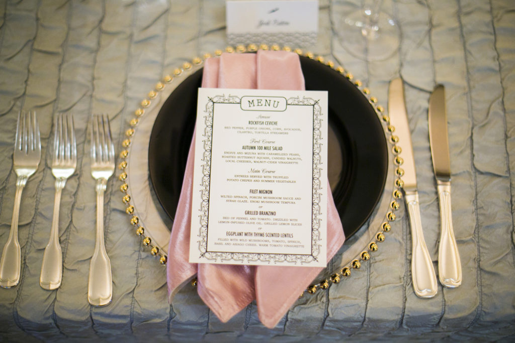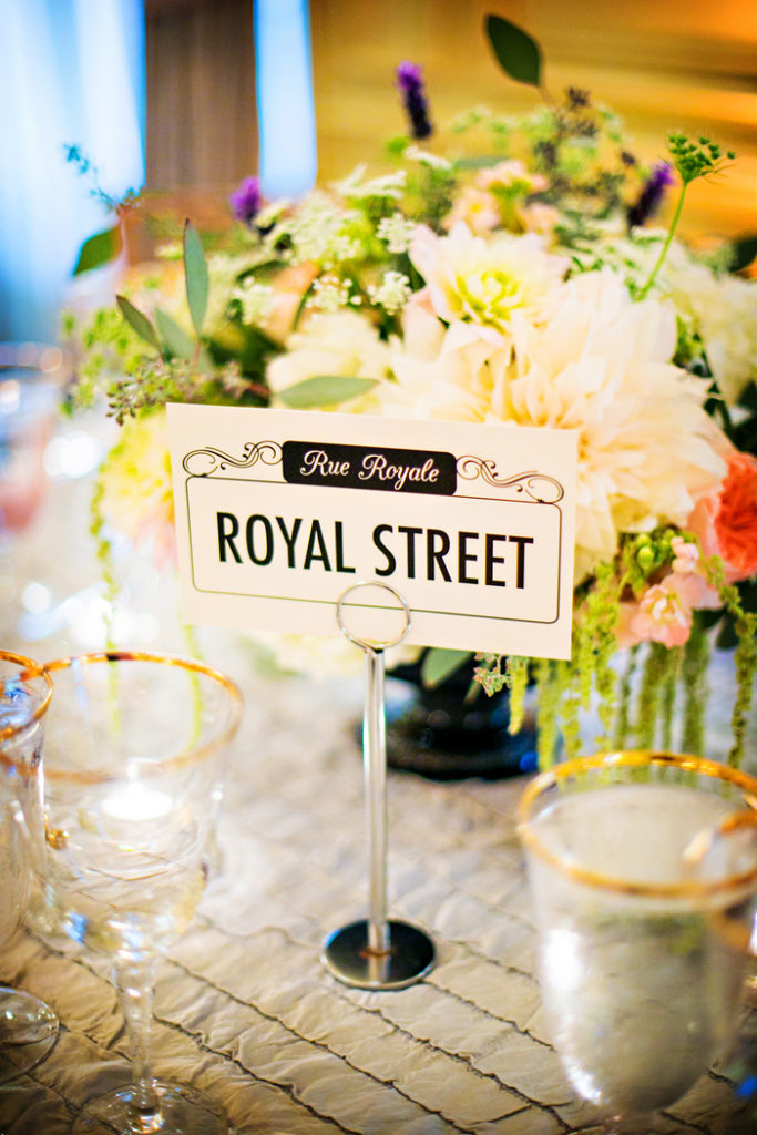 Color: Mint green, blush pink, and peach with black and gold accents. The black accent reminds them of the iron work of the railings of New Orleans, a favorite vacation spot for the couple.