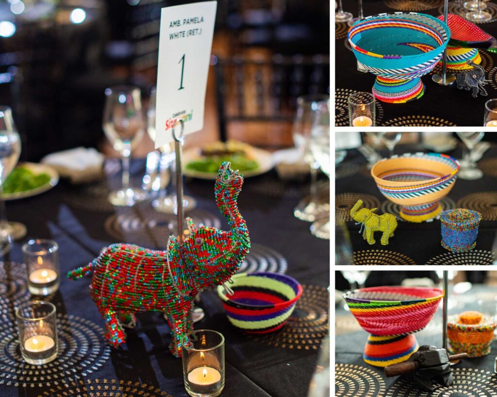 - Handmade crafts from South Africa served as centerpieces, which were also available for sale as a fundraiser during the event.